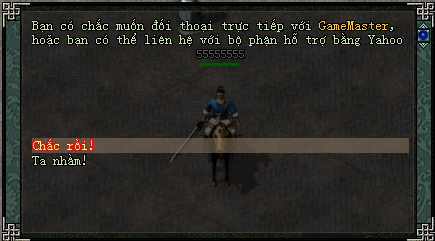 Nếu nhân sỹ nào có vướng mắt, các lỗi trong game, ý kiến khác có thể đối thoại trực tiếp với GameMaster thông qua tính năng này, khi nào GameMaster Online sẽ trả lời ngay cho quý nhân sỹ trong thời gian sớm nhất có thể.